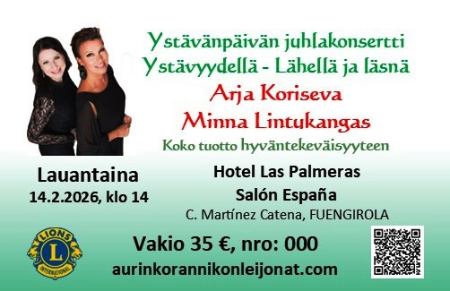 Toivomme, että voitte lunastaa perusliput tapahtumiimme Aurinkorannikon lippupisteiden kautta.